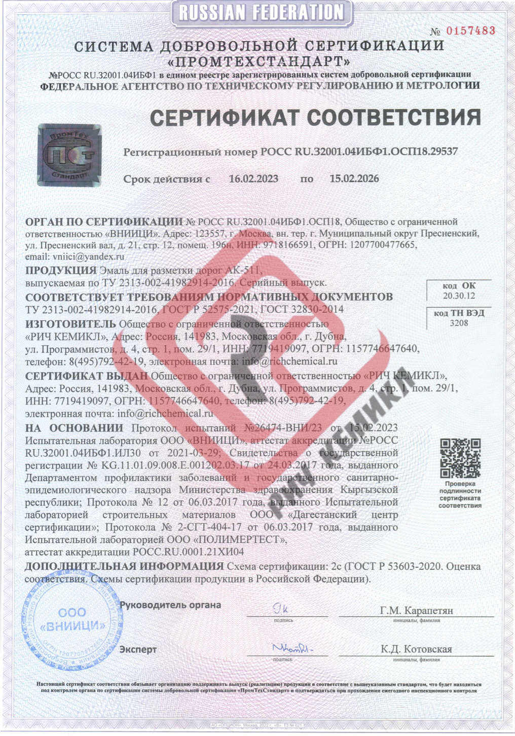 Срок годности: 12 месяцев от даты изготовления (при соблюдении условий транспортировки и хранения).